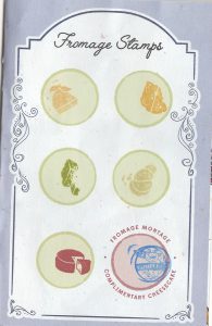 Congratulations! You have completed the Emile’s Fromage Montage. Emile would like to reward you with a delicious treat. Make your way to Shimmering Sips located in the front of the World Showcase. Show the cast member all your completed stamps and receive your FREE cheesecake. This mini dessert has a crunchy crust with a sweet cream cheese tropical fruit cheesecake topped with white chocolate medallion with Emile’s Fromage Montage icon on it. A perfect reward.