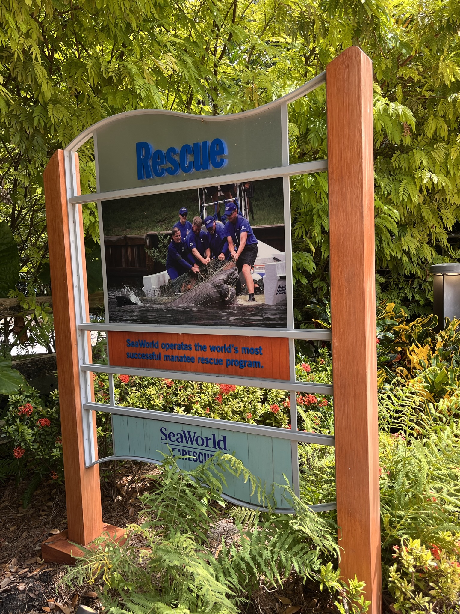 I was given the great fortune of being able to go behind the scenes at SeaWorld Orlando to tour the Manatee Rescue area. We have all seen commercials, news articles, and signs (Like the one next to Turtle Trek at SeaWorld Orlando) telling us how SeaWorld Company helps many animals in need.